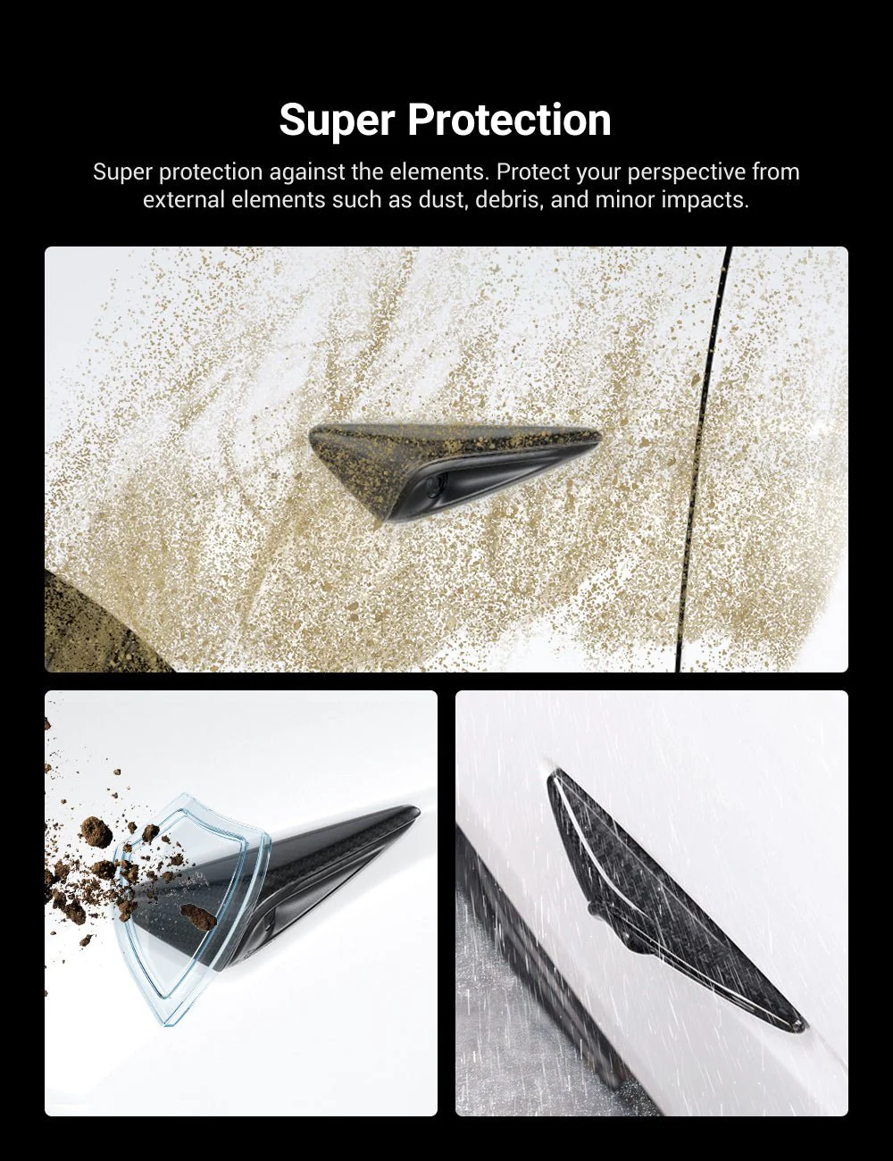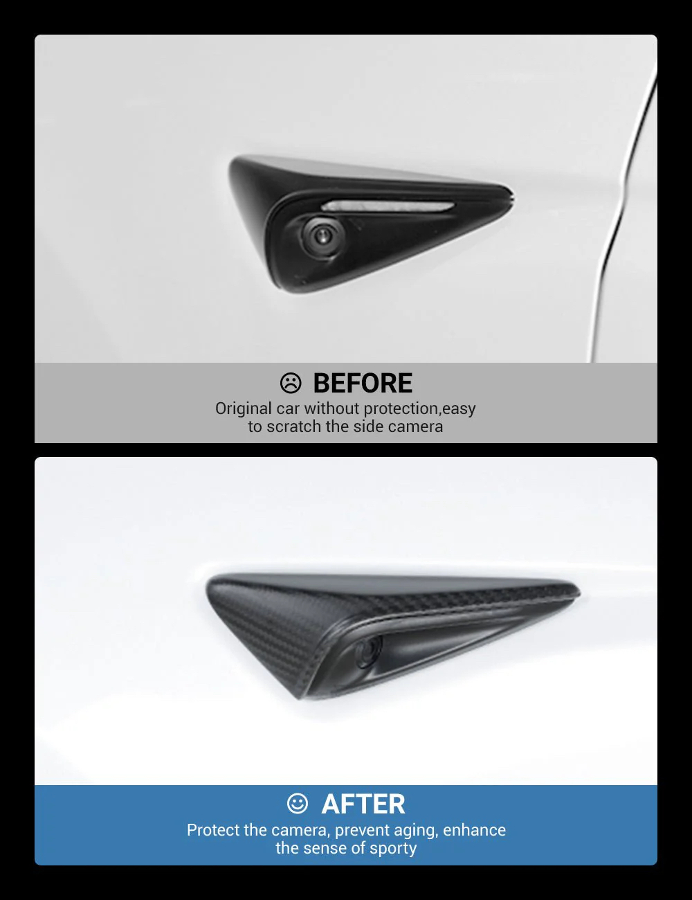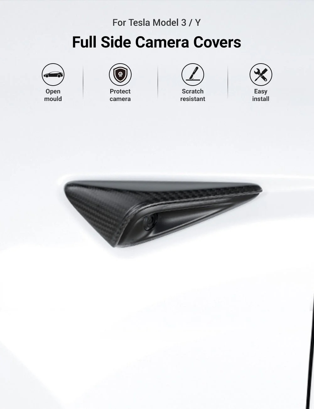 Tesla Model Y/3/X/S için tasarlanmış yan kamerayı etkili bir şekilde koruyabilen % 100 gerçek karbon fiberden yapılmıştır.