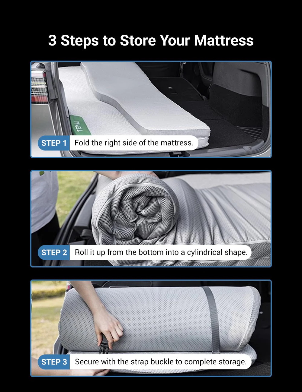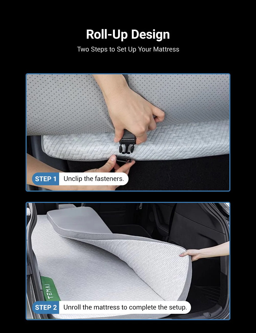 Arka bagaj alanına tam uyumlu Slow Rebound Memory Foam Yatak ile aracınızı konforlu bir yatağa dönüştürün.