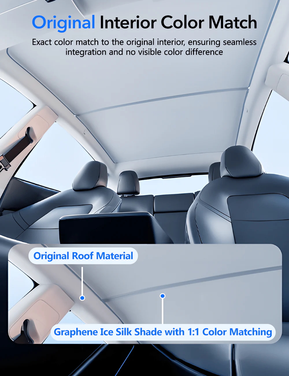 ✅ Çözüm: Grafen kumaş anında serinlik sağlar, Model Y & Juniper kabininde ferah bir ortam sunar. Terli ve yapış yapış yolculuklara son!
