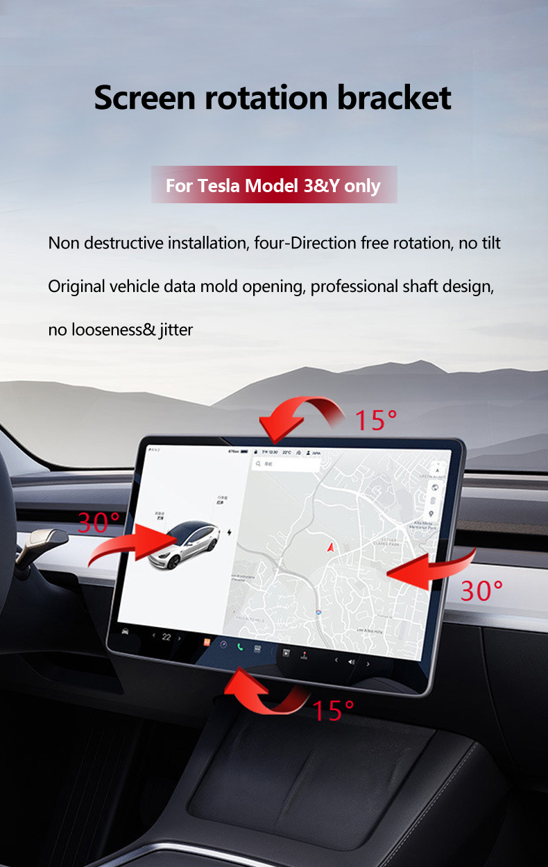 Ekran döndürme kiti, dört yönde döndürülebilir: yukarı ve aşağı, sol ve sağ. Ekranınızı ihtiyacınıza göre esnek bir şekilde ayarlayabilirsiniz. Sürücüler ekranı daha iyi görebilir ve daha güvenli ve konforlu bir sürüş deneyimi yaşayabilir. Tesla Model 3 & Y için sahip olunması gereken yükseltme aksesuarları arasındadır.